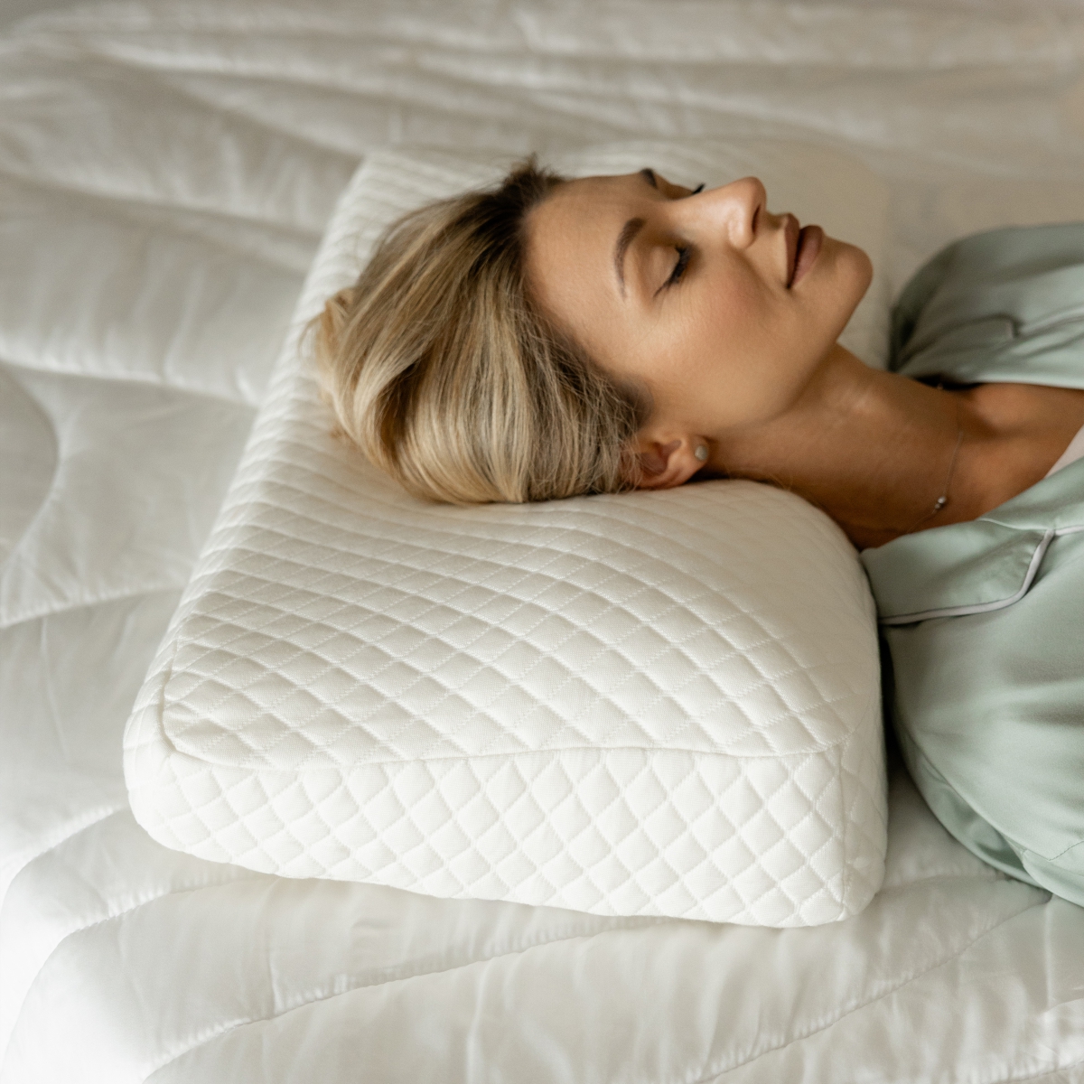• Борьба с отеками: правильное положение головы исключает застой лимфы, помогая проснуться со свежим и отдохнувшим лицом без мешков и припухлостей.