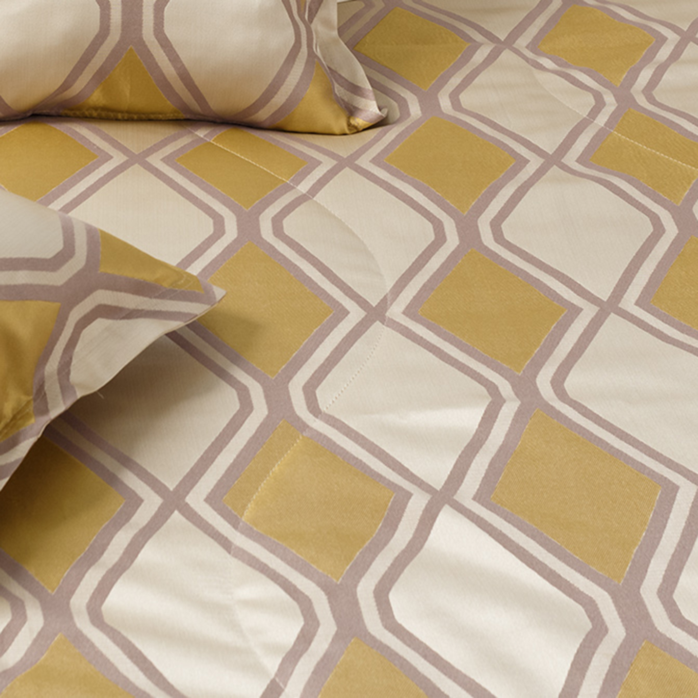 В комплект входит: стеганное покрывало на подкладе размер 220*240 см и 2 декоративные наволочки 45х45 см на молнии. Наволочки с четырех сторон декорированы ушками шириной 3 см.