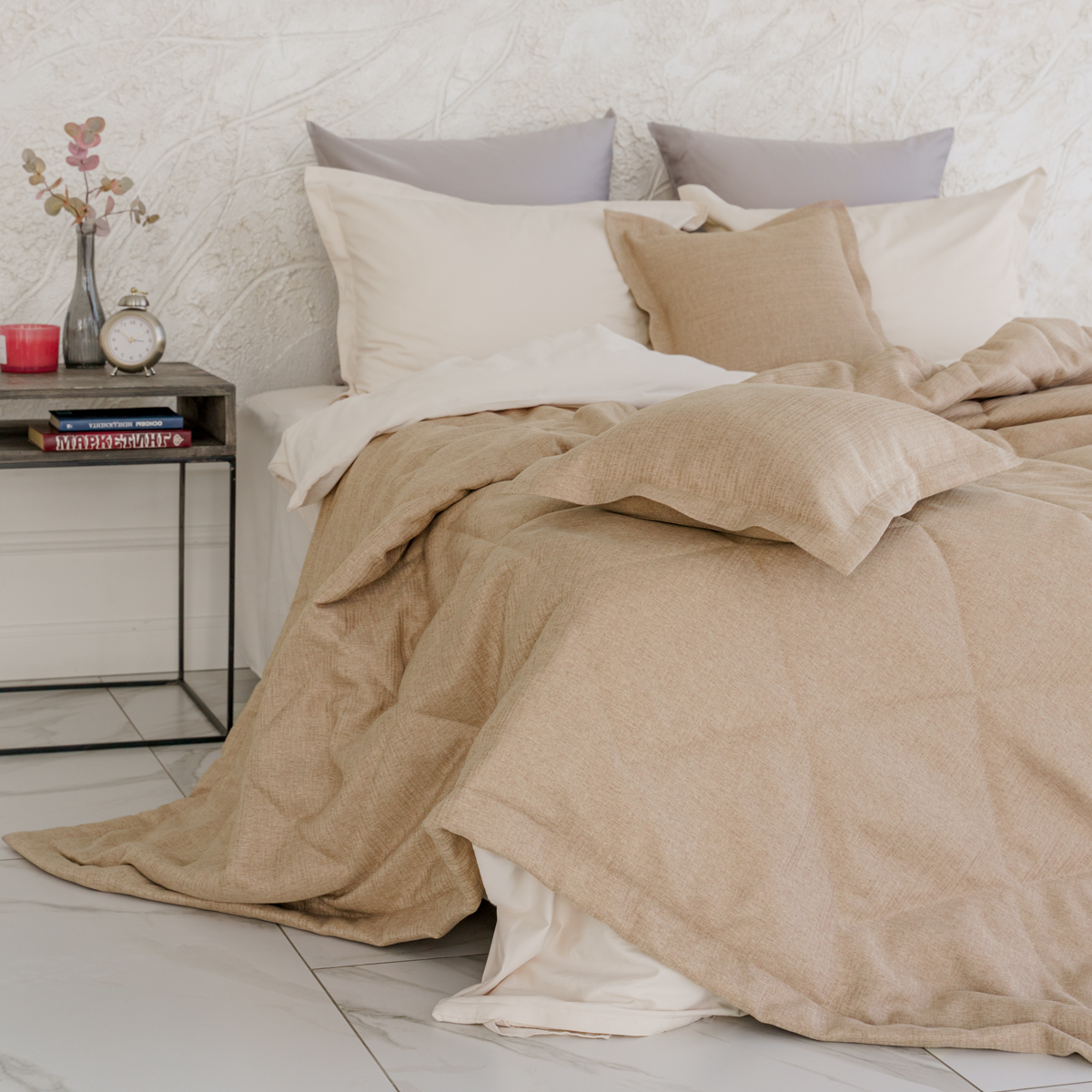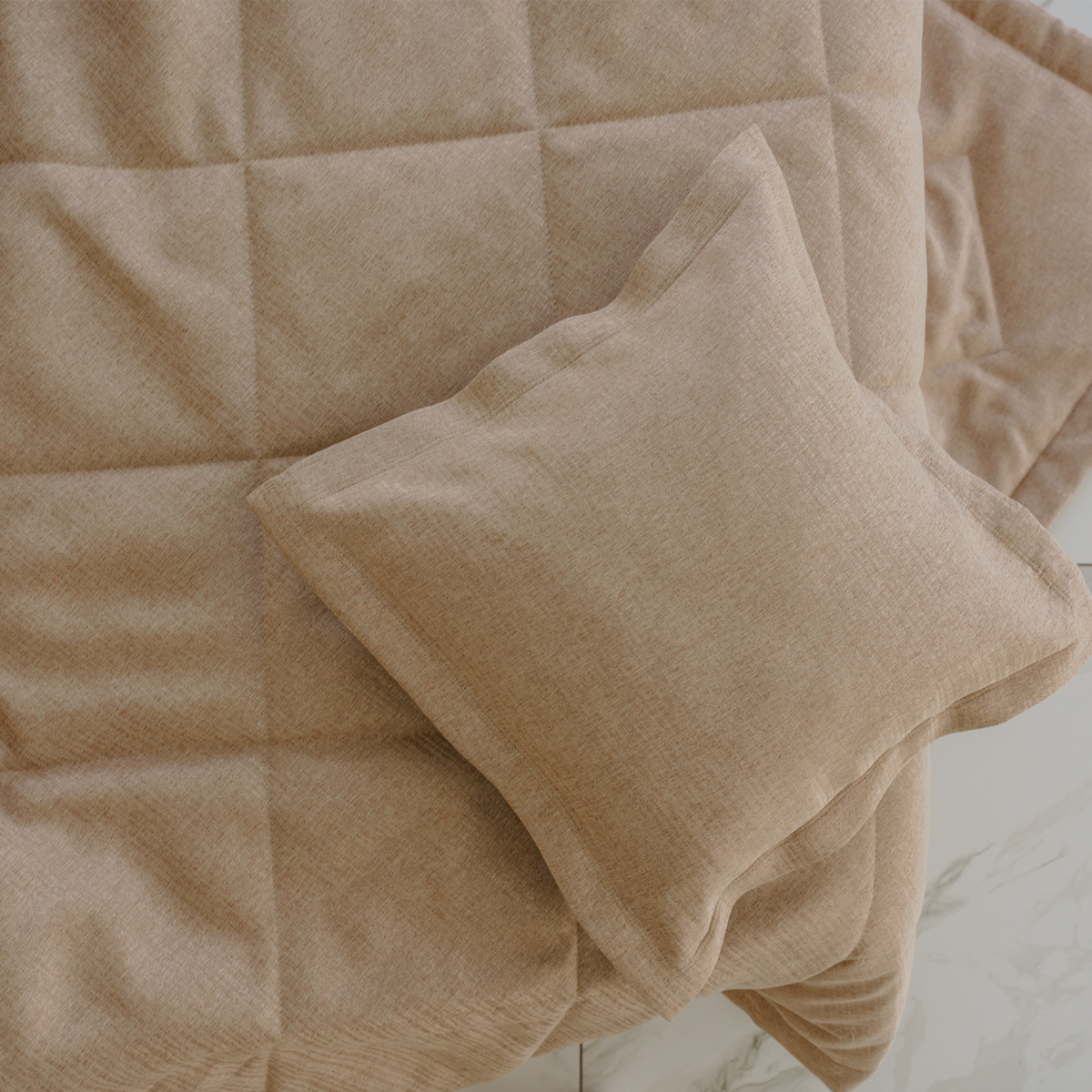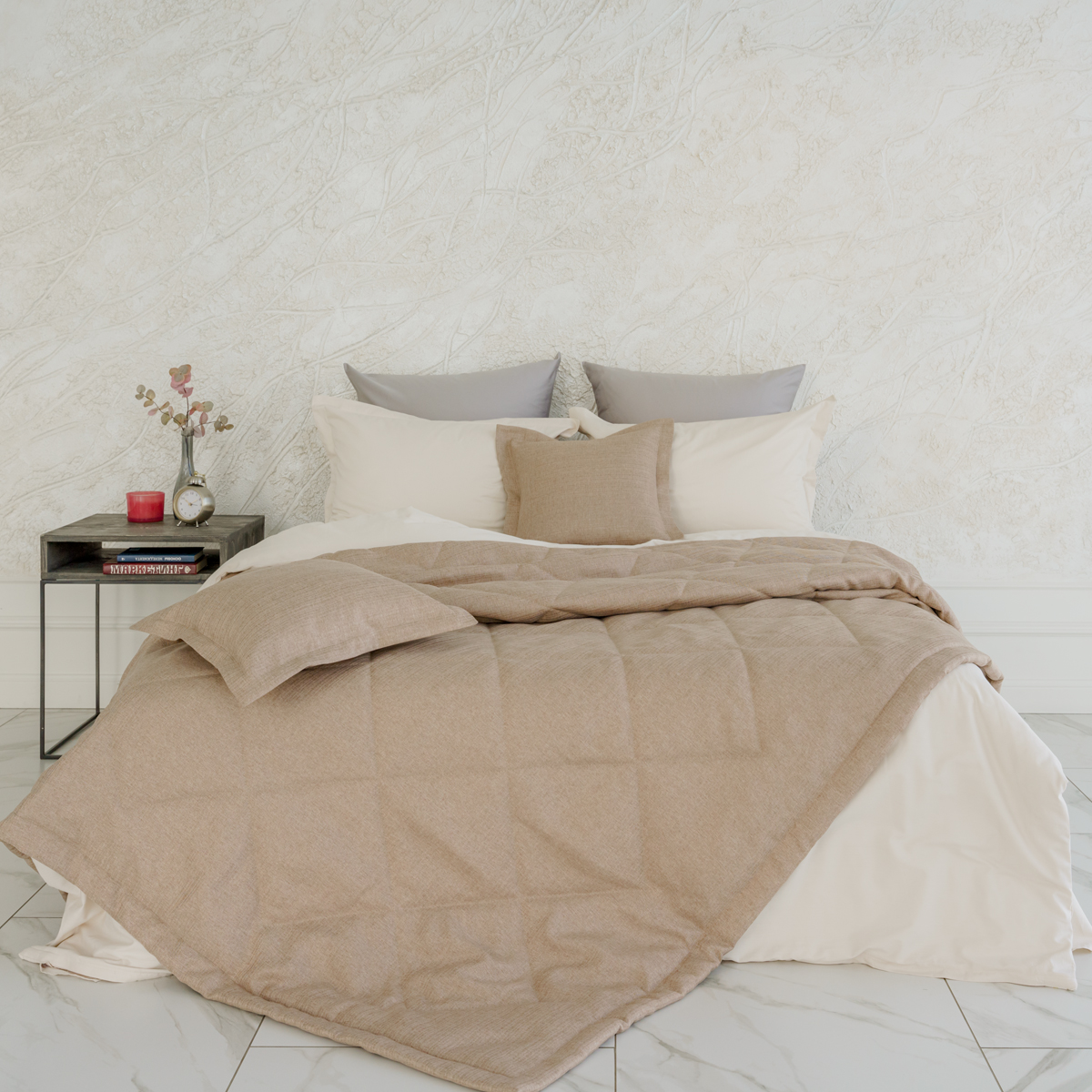 Практичность и функциональность лежит в основе данной коллекции. Изысканная и простая красота раскрывается в универсальных и базовых расцветках однотонных покрывал. Фактурная меланжевая поверхность органично подчеркнет индивидуальность интерьера, выделив в нем только самое важное.