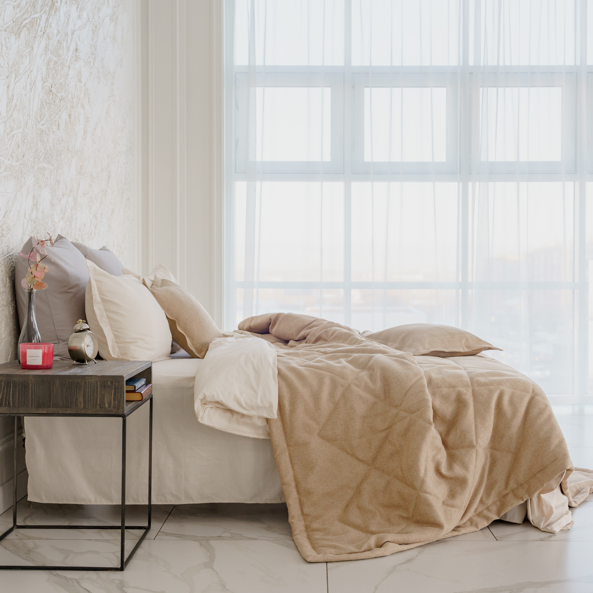 Покрывало на кровать Evelyn выполнено в 3х трендовых и натуральных оттенках. Они прекрасно подойдут тем, кто предпочитает спокойный и сдержанный стиль.