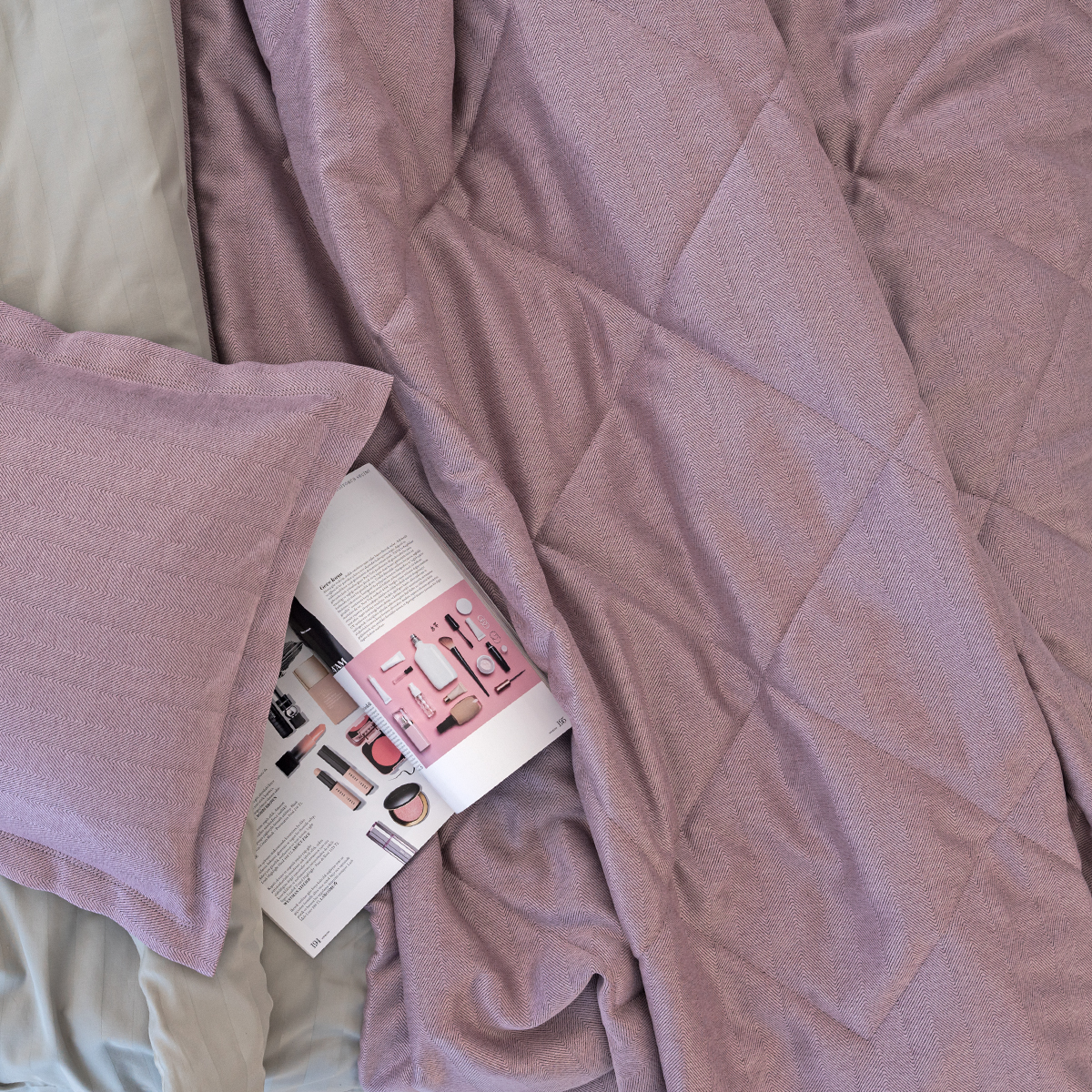 За покрывалом очень легко ухаживать, его можно стирать в домашних условиях при температуре 30С. Покрывало на кровать отлично держит форму и не дает усадку.