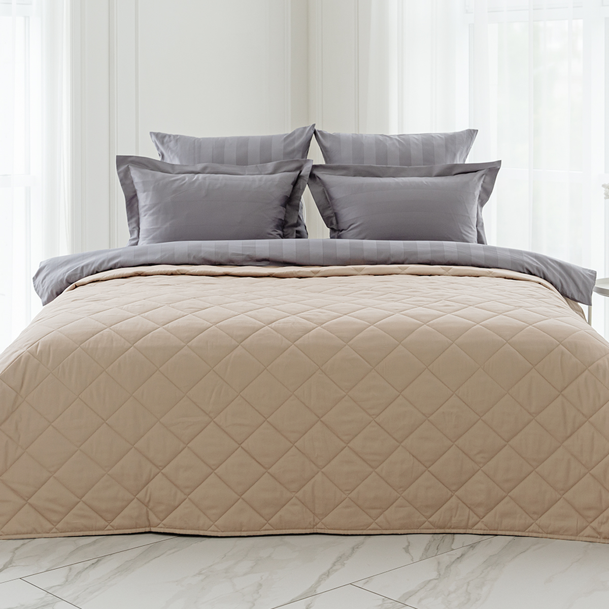 ОСОБЕННОСТЬ модели: хлопковое покрывало на кровать с закругленным уголком, практичной окантовкой по периметру изделия и стильной стежкой в виде ромбов. Верхняя и нижняя часть покрывала выполнены из высококачественного египетского хлопка – безопасного, натурального и комфортного материала.