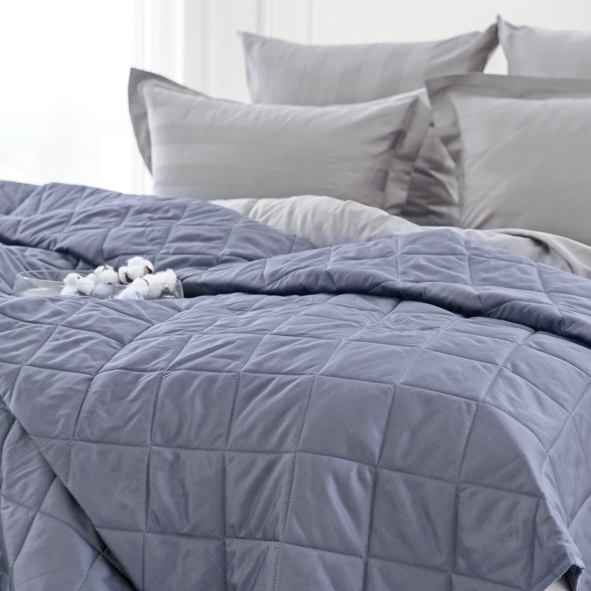 ОСОБЕННОСТЬ модели: хлопковое покрывало на кровать с закругленным уголком, практичной окантовкой по периметру изделия и стильной стежкой в виде ромбов.  Верхняя и нижняя часть покрывала выполнены из высококачественного египетского хлопка – безопасного, натурального и комфортного материала.