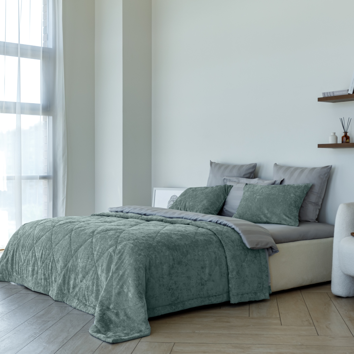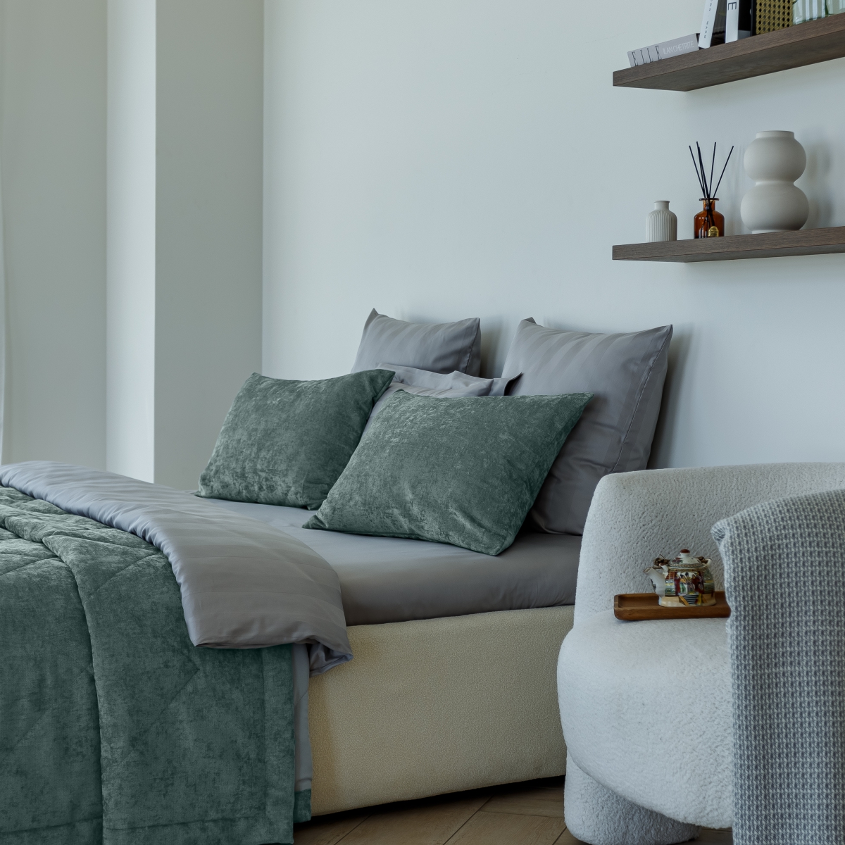 Выразительная игра света и мягкости гармонично воплощена в роскошной коллекции покрывал, она будто преобразует пространство, придавая ему благородный шик.