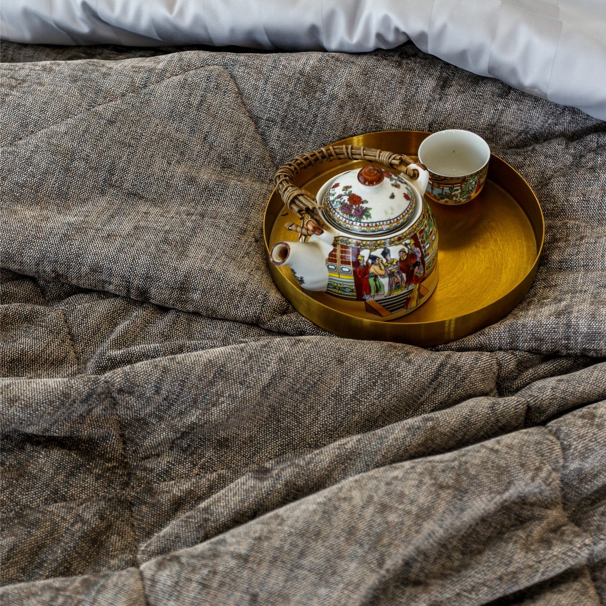 Выразительная игра света и мягкости гармонично воплощена в роскошной коллекции покрывал, она будто преобразует пространство, придавая ему благородный шик.