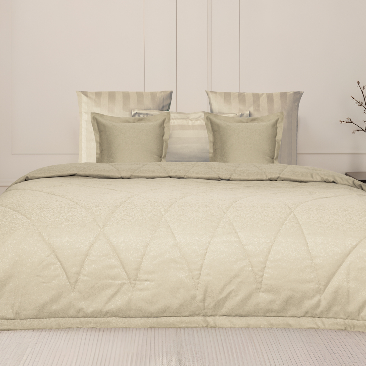 В комплект входит: покрывало стеганое 240х260см и декоративные наволочки на молнии 45х45см