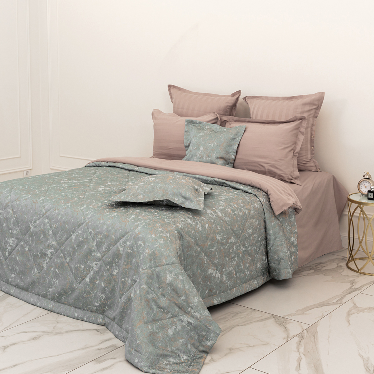 Покрывало Glori - современный стильный дизайн, с ноткой индивидуальности и завораживающей глубины. Она придаст пространству спальни особый шарм. Смотрится изысканно и элегантно, сочетает в себе изящный жаккардовый блеск, благородные цвета и фактуру.