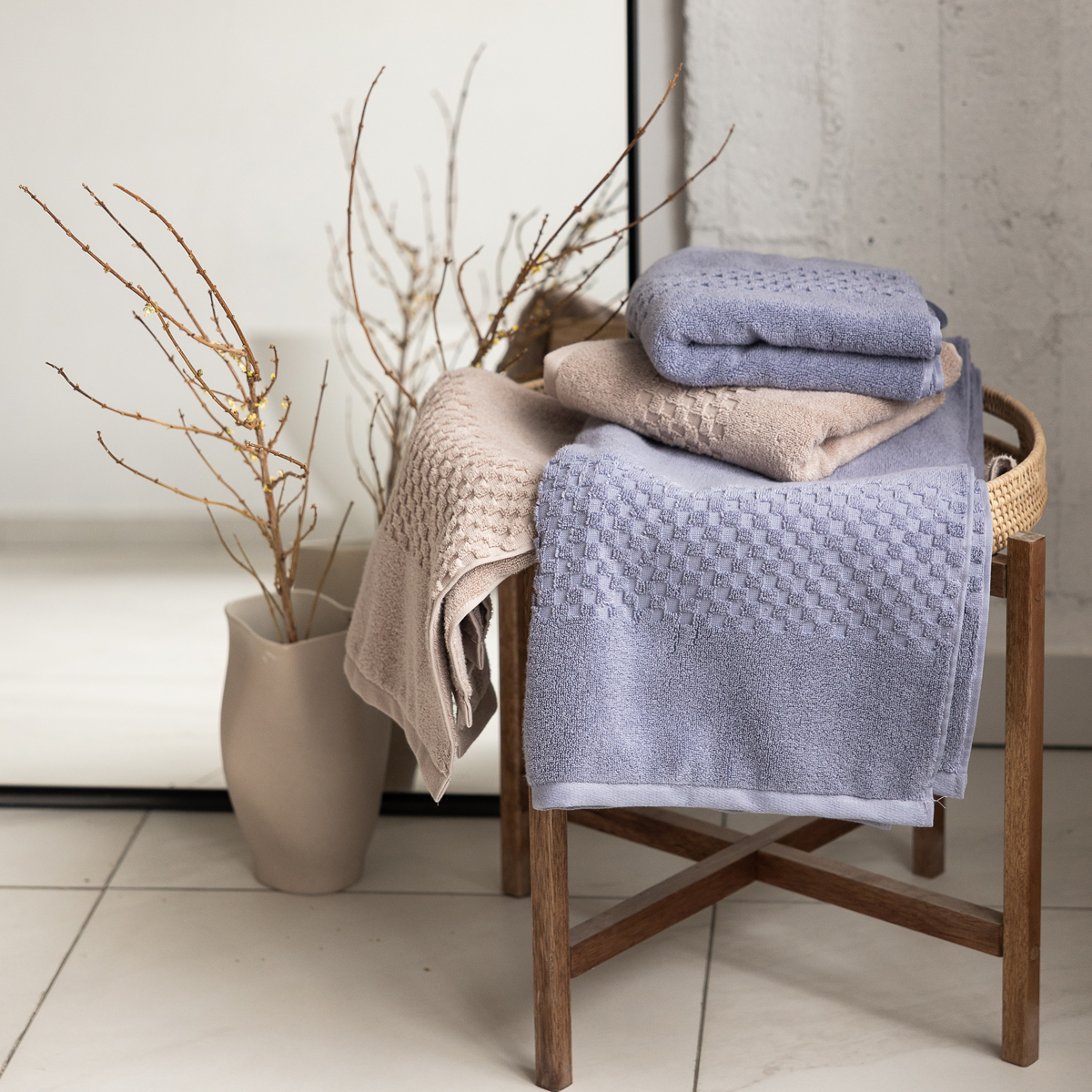 Капсульная коллекция махровых изделий Mystic. В коллекцию входят 2 стильных оттенка: Beige и Grey.
