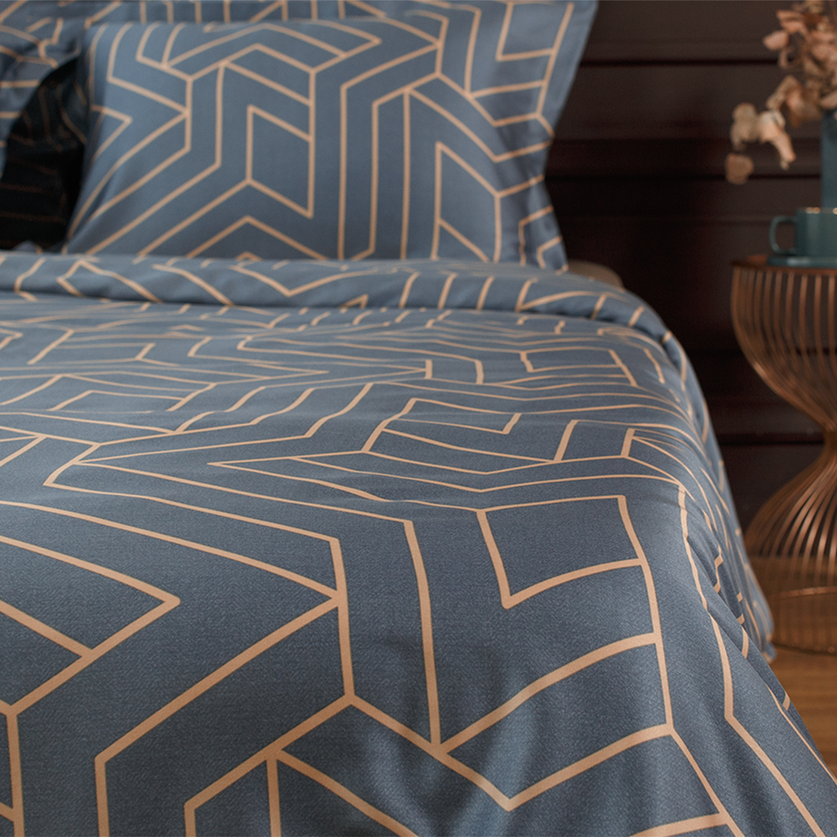 Доминик - необычный и стильный принт на глубоком и манящем синем фоне. Строгая и ультрамодная геометрия линий и форм завораживает и наполняет пространство неповторимым стилем.