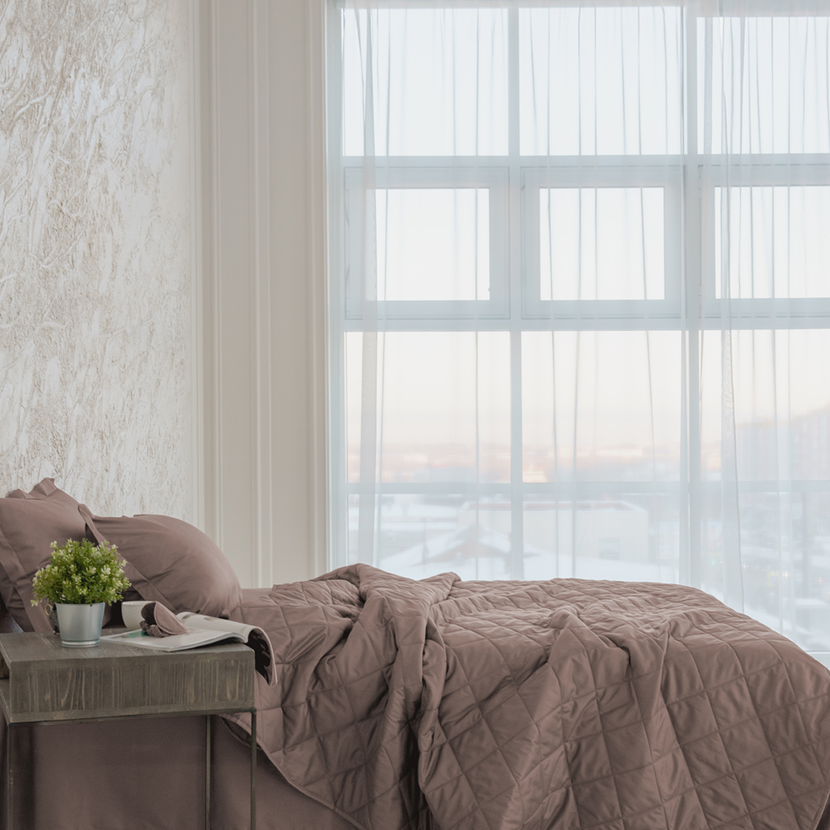 - Стеганое легкое одеяло (плотность 100 г/м2) - 220х240см, подойдёт для всесезонного использования.