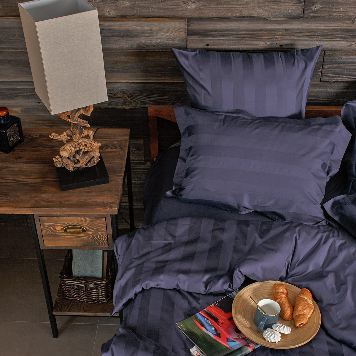 Однотонный комплект постельного белья - роскошный 100% египетский хлопок высшего сорта, с жаккардовым рисунком в виде полос 5х5см. Используется более тонкая 60-я нить. За счет специальной скрутки нити, ткань получается очень мягкая и приятная на ощупь. Имеет благородный блеск.
