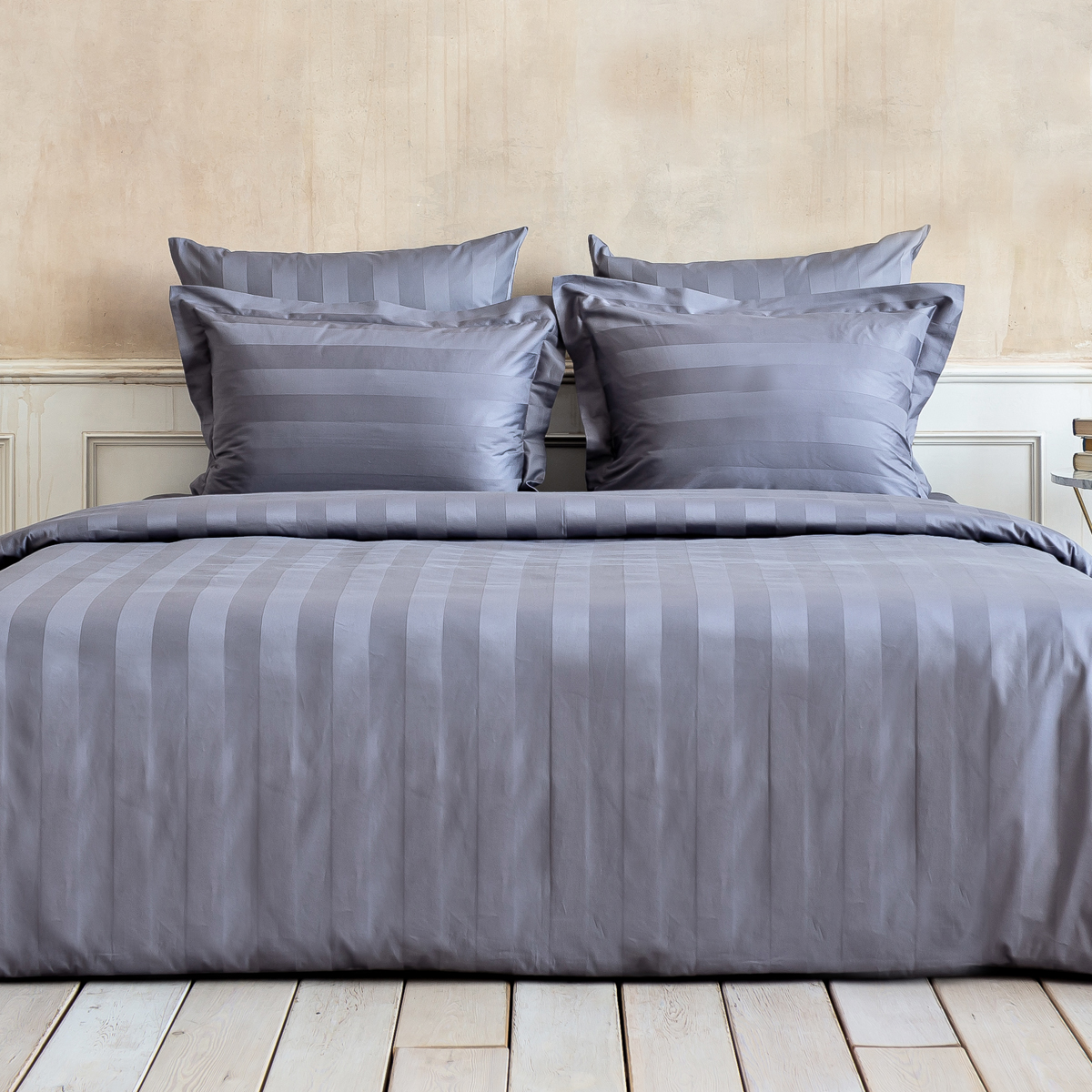 Однотонный комплект постельного белья - роскошный 100% египетский хлопок высшего сорта, с жаккардовым рисунком в виде полос 5х5см. Используется более тонкая 60-я нить. За счет специальной скрутки нити, ткань получается очень мягкая и приятная на ощупь. Имеет благородный блеск.