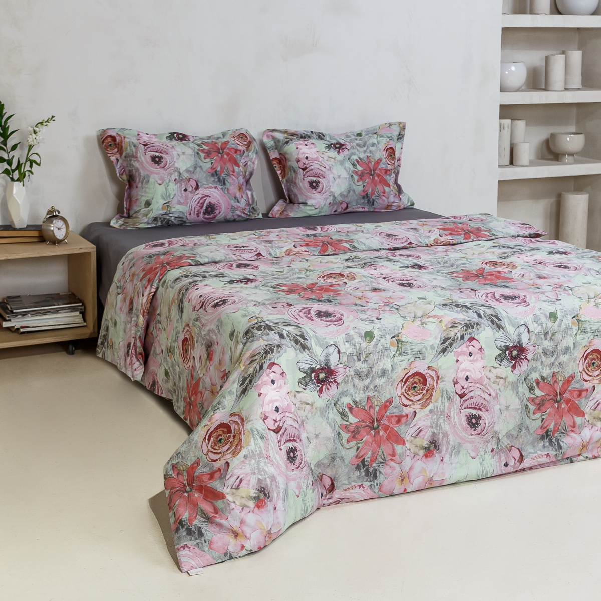Яркий дизайн, вдохновленный природой, переносит в мир чувственной красоты, где каждый цветок — часть гармоничной композиции. Глубокая палитра и насыщенный принт создают роскошный и современный стиль. Идеально для тех, кто ценит красоту природы и стремится к уютной, теплой атмосфере в спальне.