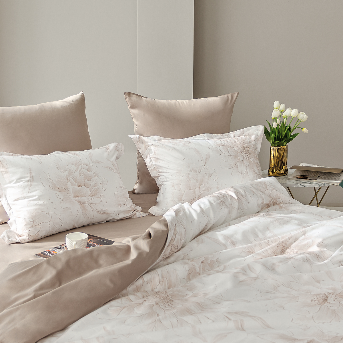 Роскошный 100% египетский хлопок высшего сорта, является самым экологически чистым в мире. В ткани мако-сатин, из которой произведена коллекция, используется более тонкая 60-я нить. Плотность ткани 300 ТС. За счет специальной скрутки нити, ткань получается очень мягкая и приятная на ощупь.