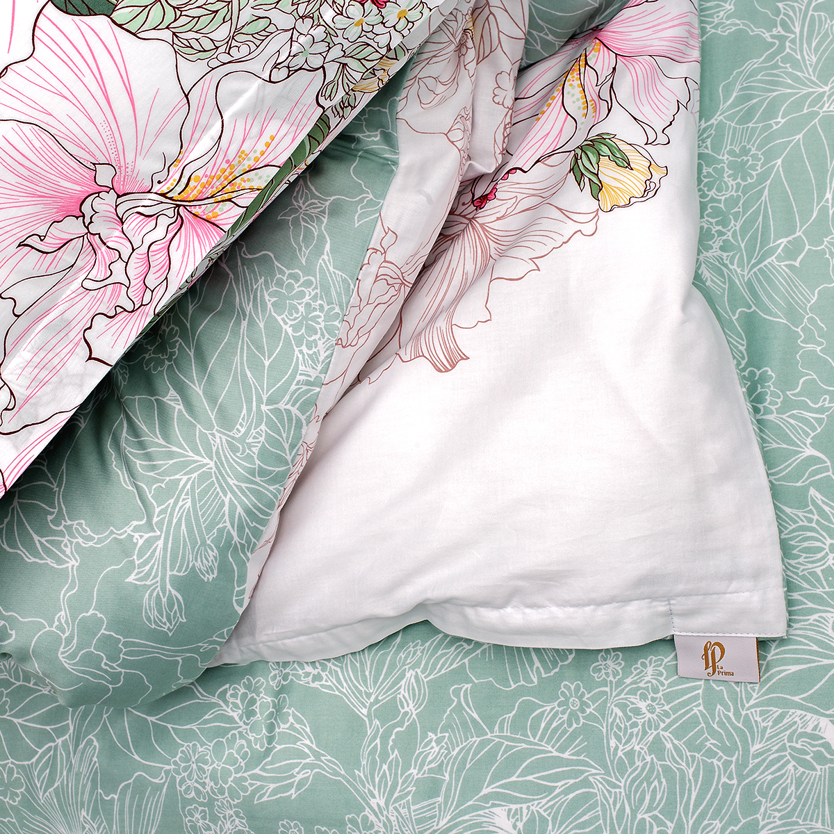 Цветущий сад, будто окутанный волшебным флером изящных цветочных композиций. Дополнен зеленым оттенком шалфея, который вносит модную и очаровательную нотку свежести в интерьер спальни.