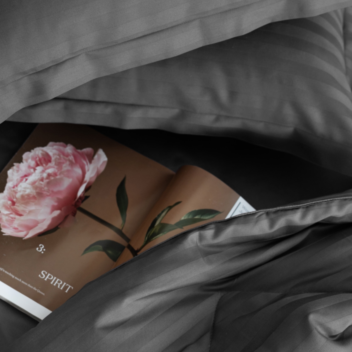 Постельное бельё Cатин | ПОСТЕЛЬНОЕ БЕЛЬЁ СТРАЙП-САТИН С ОДЕЯЛОМ 2 НАВОЛОЧКИ ТЕМНО-СЕРЫЙ