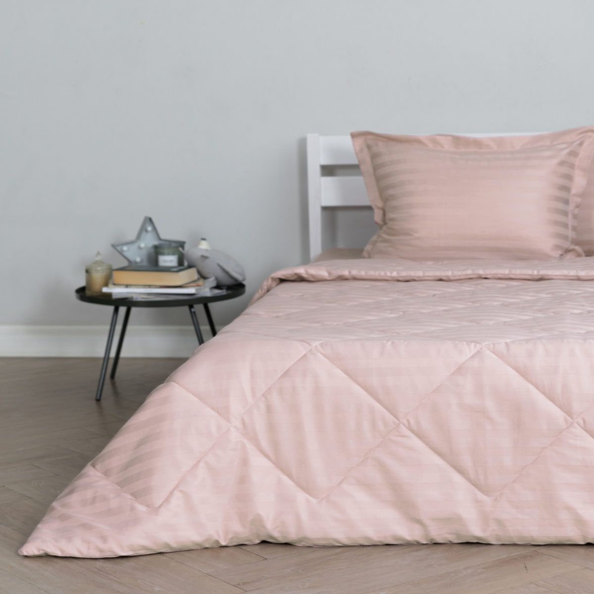 Постельное бельё Cатин | ПОСТЕЛЬНОЕ БЕЛЬЁ СТРАЙП-САТИН С ОДЕЯЛОМ 2 НАВОЛОЧКИ ПУДРА