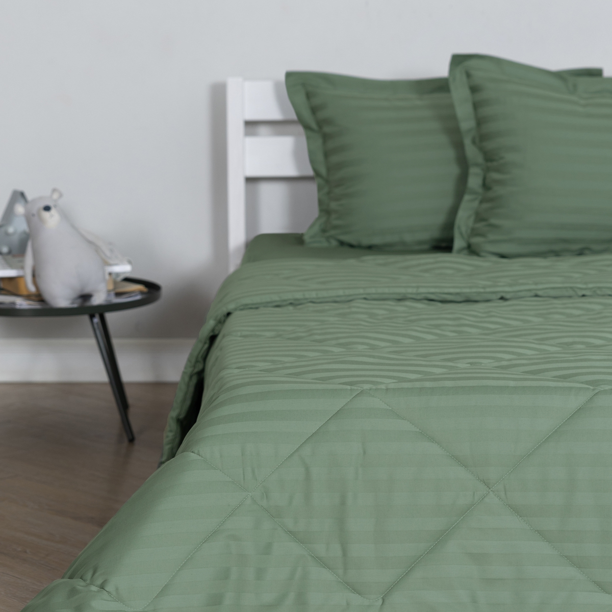 Постельное бельё Cатин | ПОСТЕЛЬНОЕ БЕЛЬЁ СТРАЙП-САТИН С ОДЕЯЛОМ 2 НАВОЛОЧКИ ЗЕЛЕНЫЙ
