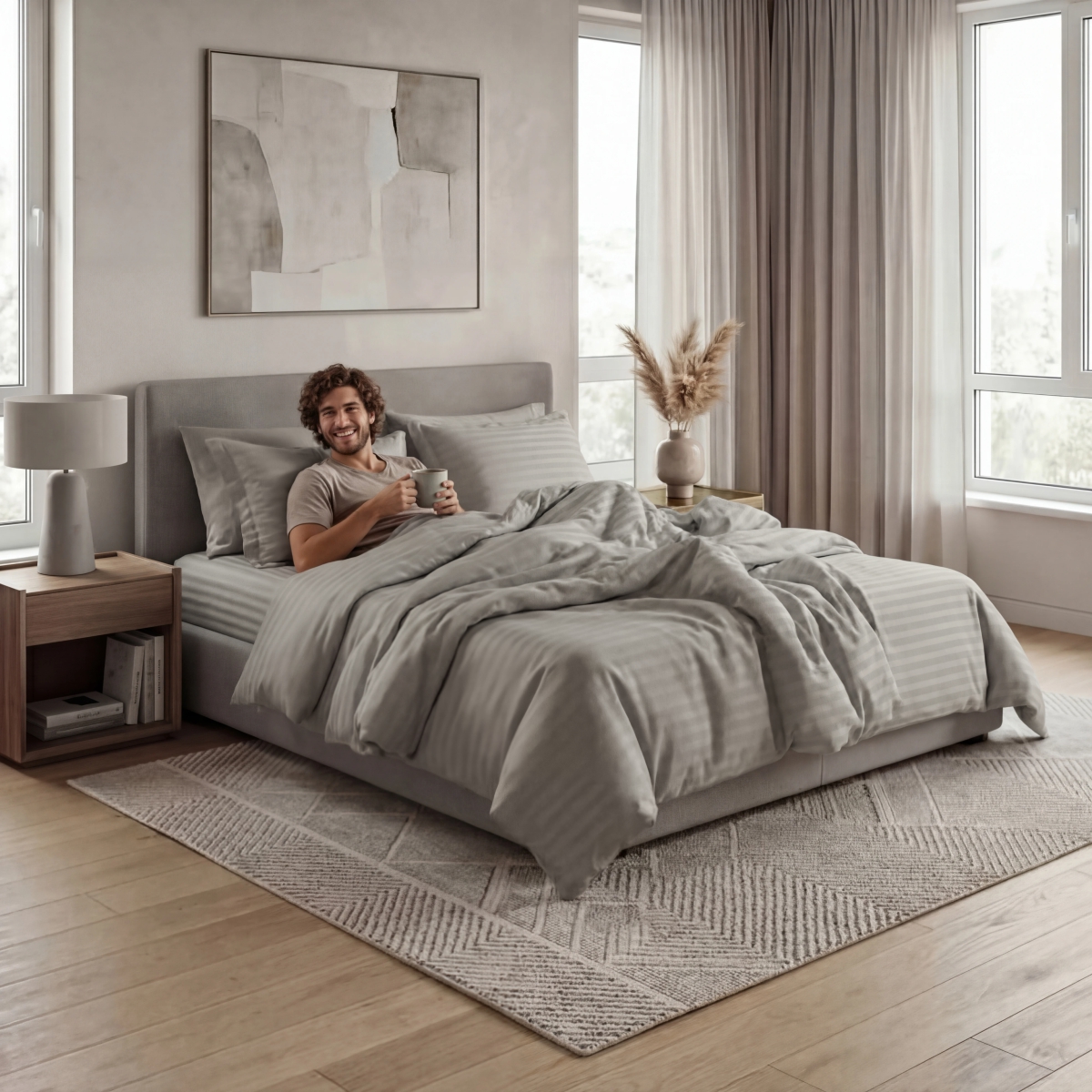 Закройте глаза и представьте: вы ложитесь в кровать, и шелковистое постельное белье нежно обнимает вас, убаюкивая и окутывая теплом. Утром вы просыпаетесь, чувствуя себя отдохнувшими и вдохновлёнными. Это не сон — это постельное белье La Prima из 100% хлопка. Оно создано, чтобы превращать каждую ночь в маленький отпуск в люксовом отеле.