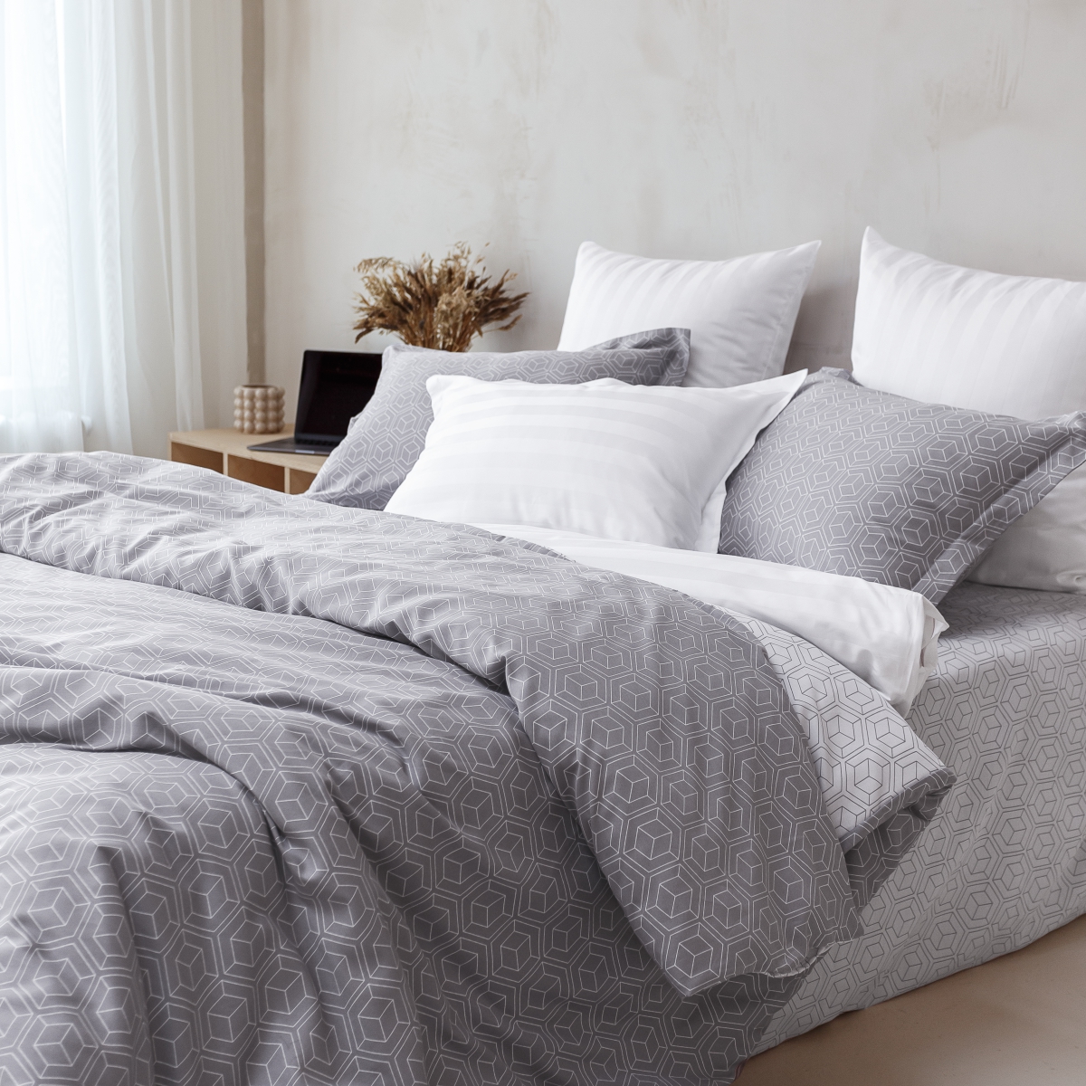 Эта ткань не требует специального ухода – легко стирается и гладится. Пропускает воздух, поддерживает комфортную температуру тела, когда вы спите. Гипоаллергенно.