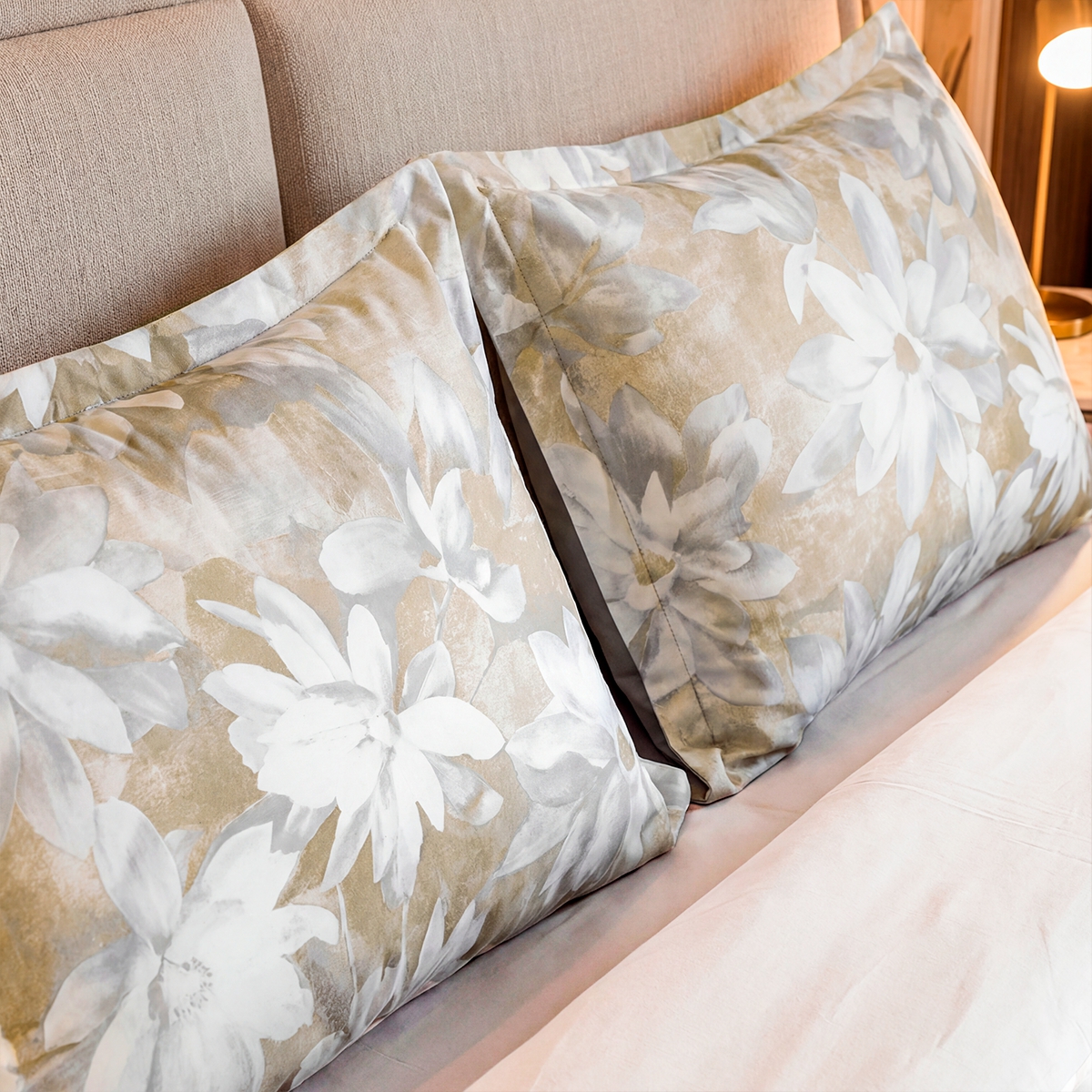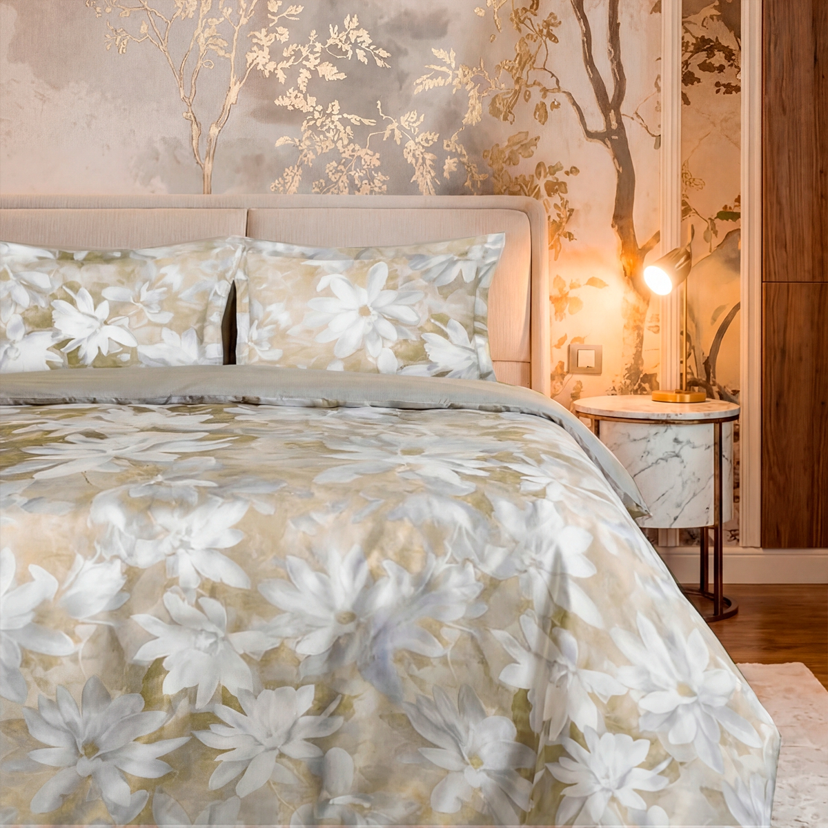 «Мариселла»: Крупный цветочный принт на теплом бежевом фоне. Это сад в стиле старых мастеров, перенесенный на ткань. Дарит ощущение роскоши, стабильности и связи с природой.