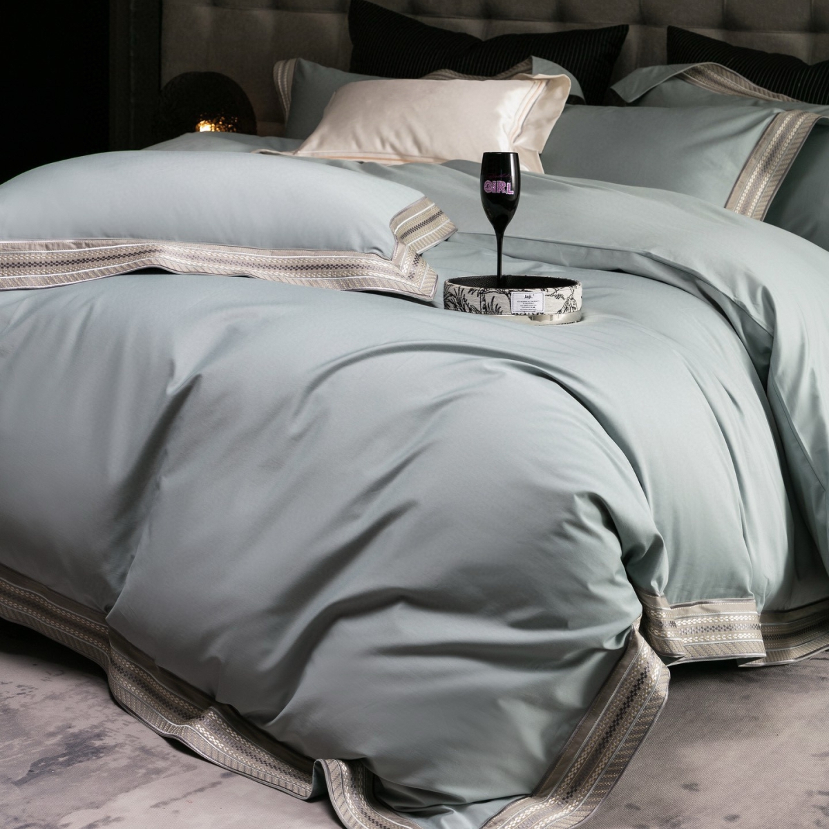 Постельное бельё выполнено из 100% хлопка-сатина плотностью 700 ТС — прочного и износостойкого материала с шелковистым блеском. Для его создания использованы лучшие сорта длинноволокнистого хлопка, включая элитный сорт с природными антибактериальными свойствами, что делает ткань не только красивой, но и заботящейся о здоровье. Из длинных волокон получается особо прочная ткань, которая прекрасно впитывает влагу, остаётся мягкой и комфортной даже после множества стирок, а её свойства подчёркивают современный подход к премиальному текстилю.