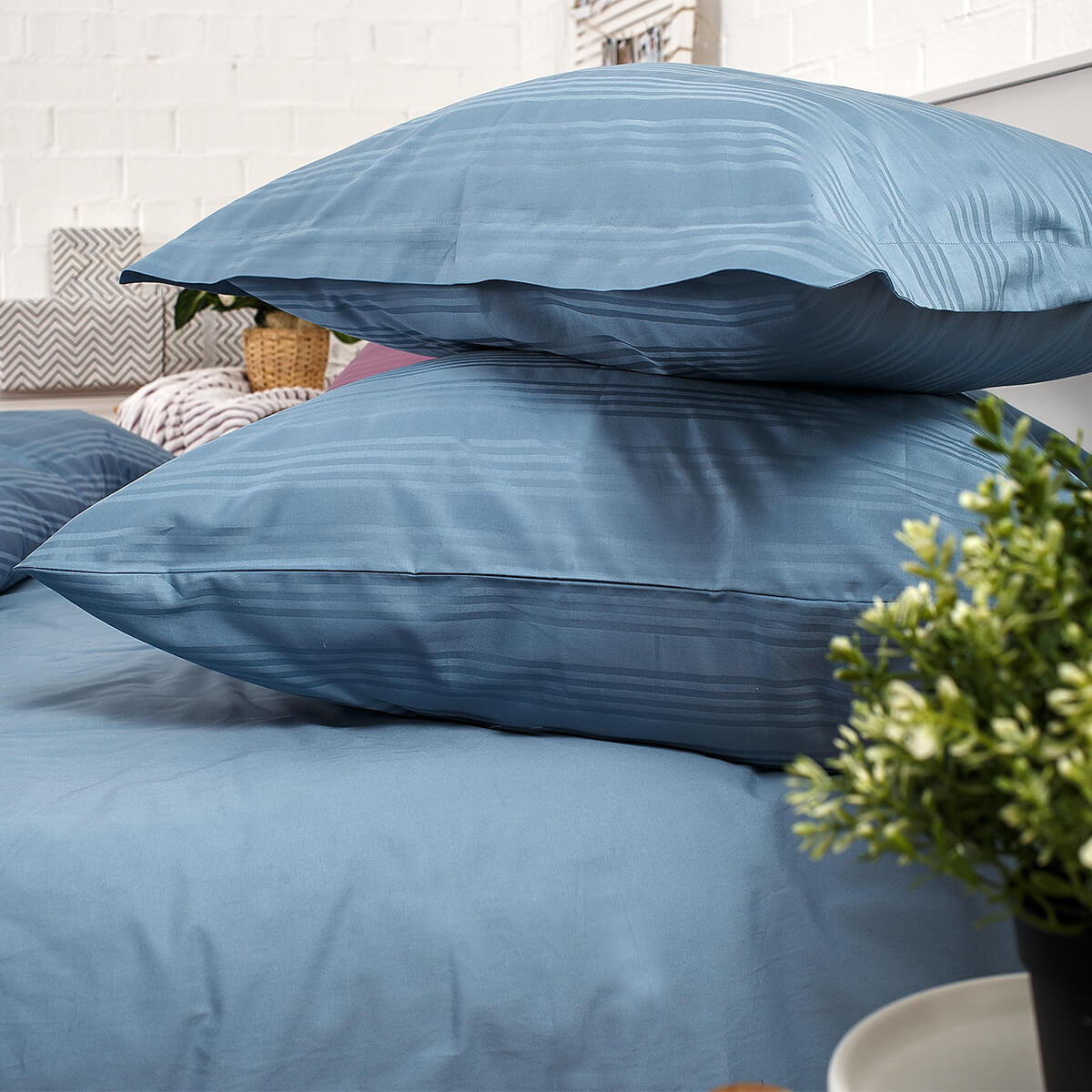 Однотонная стильная наволочка произведена из ткани страйп-сатин – 100% хлопок с жаккардовым рисунком в виде полос 4*1. Благодаря специальному плетению - это гладкая, нежная и приятная на ощупь ткань. Пропускает воздух, поддерживает комфортную температуру тела, когда вы спите.