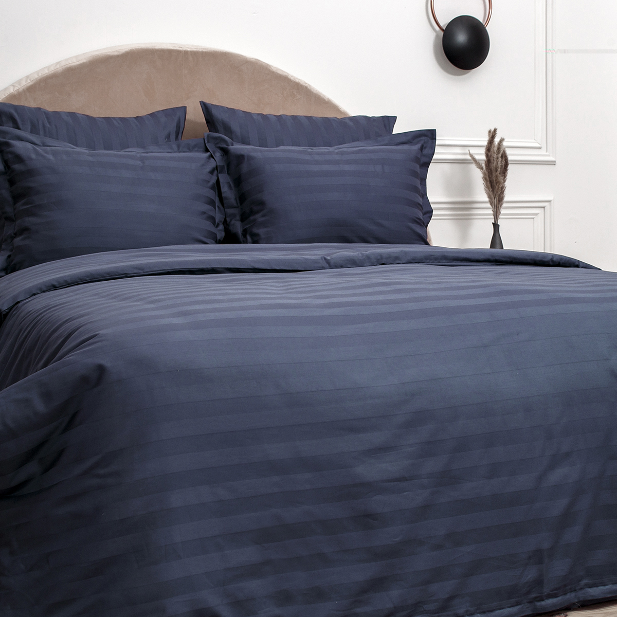 Однотонный стильный пододеяльник произведен из ткани страйп-сатин – 100% хлопок с жаккардовым рисунком в виде полос 3х3.