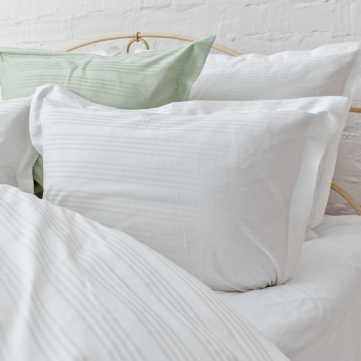 Однотонный стильный пододеяльник произведен из ткани страйп-сатин – 100% хлопок с жаккардовым рисунком в виде полос 3х3.
