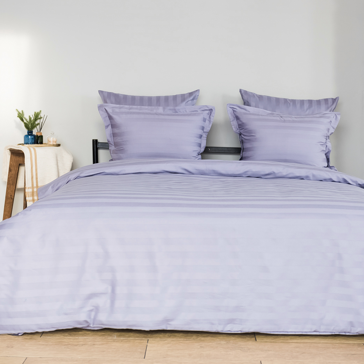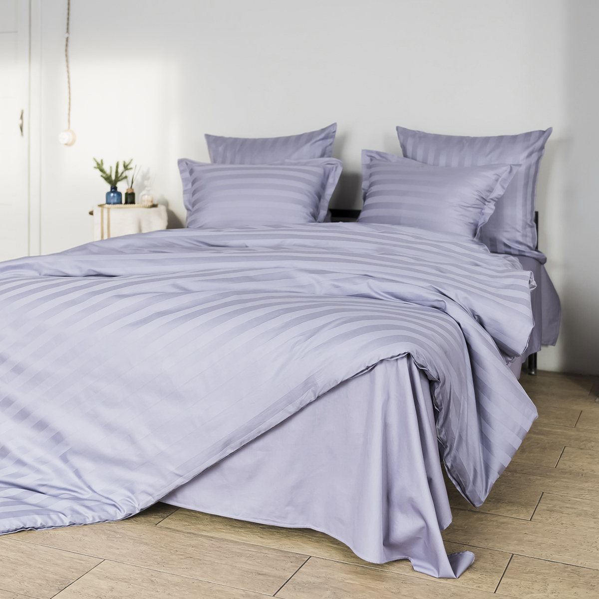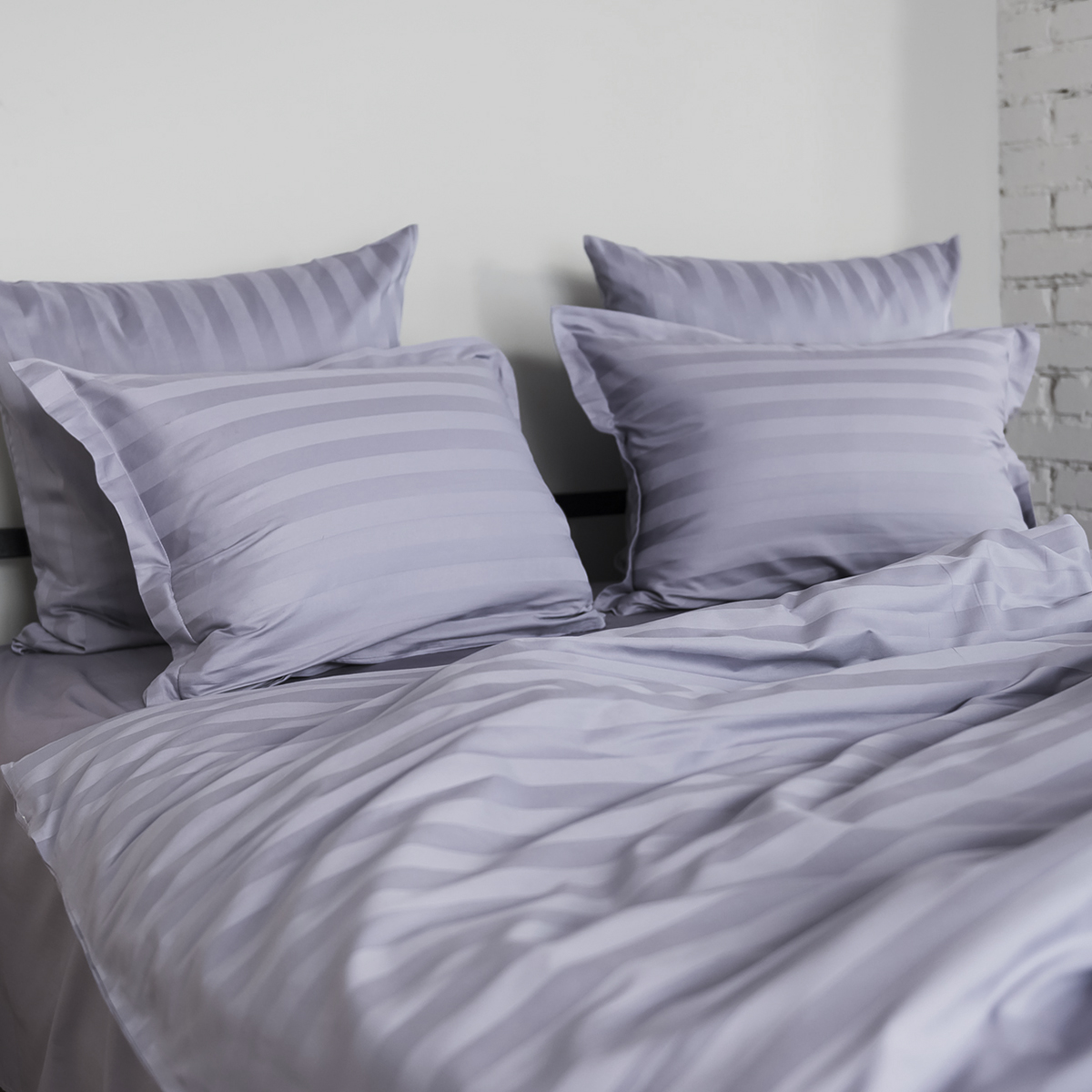 Однотонный стильный пододеяльник произведен из ткани страйп-сатин – 100% хлопок с жаккардовым рисунком в виде полос 3х3