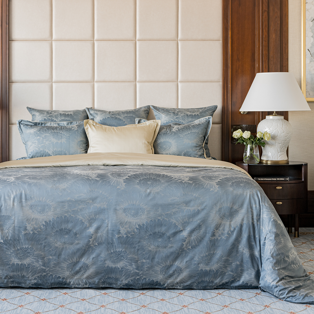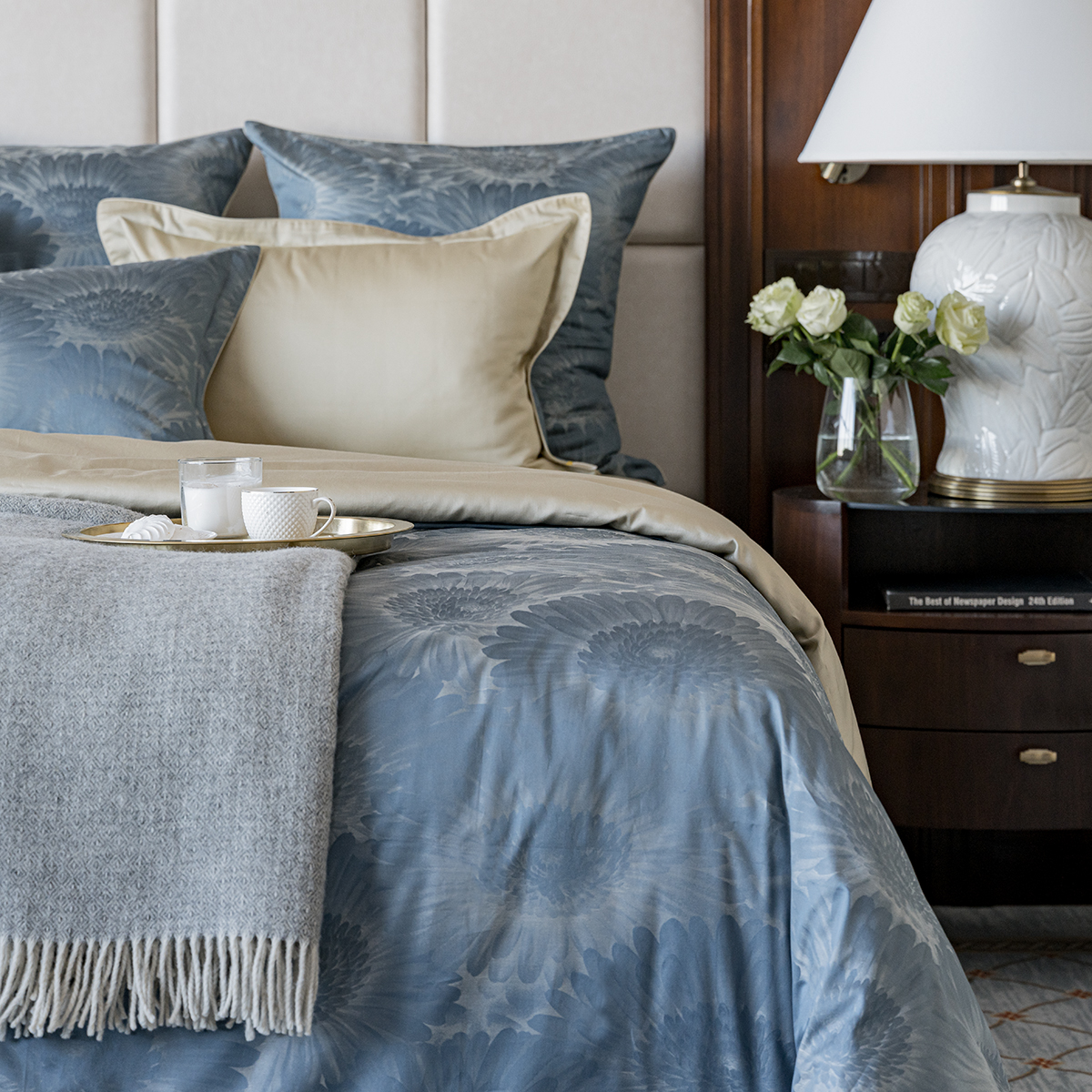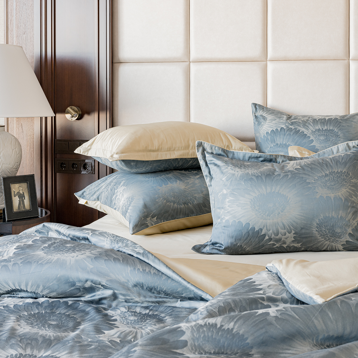 - Лицевая сторона наволочек и пододеяльника выполнена из жаккардовой ткани, оборотная из премиального длинноволокнистого хлопка сорта Пима