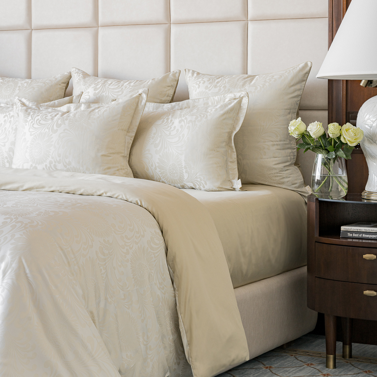 Внешне жаккардовое постельное белье выглядит очень дорого и изысканно. Благодаря тому, что нити в процессе производства перекручиваются, жаккардовая ткань очень плотная, прочная и устойчивая к деформированию, а рисунок и цвет не тускнеют в процессе эксплуатации.