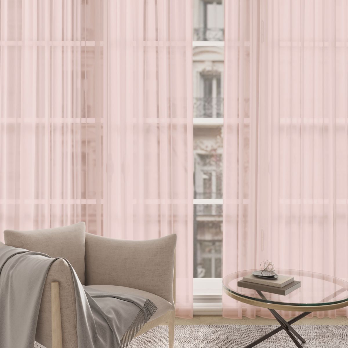 Легкая невесомая структура полотна соткана в виде сетки, фактура очень легкая, при этом есть возможность ощутить глубину цвета, придав интерьеру стильную завершенность.
